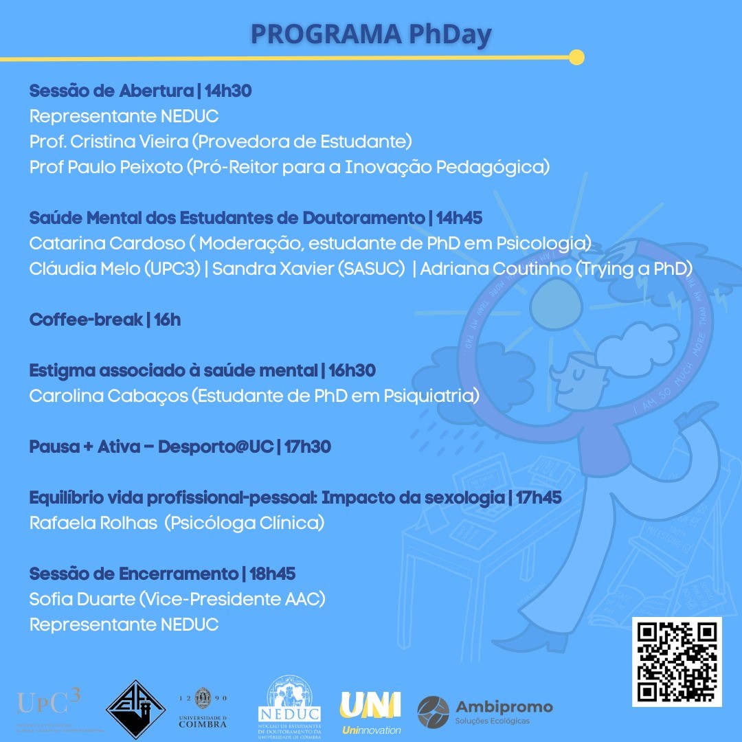 [AllUsers-ISR] PhD Day - Seminário de Promoção de Saúde Mental na UC | 10 de outubro | 14h30 | Polo I